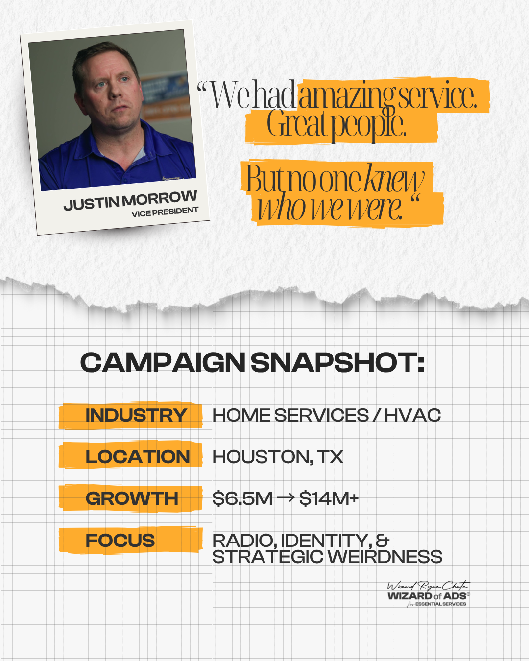 “We had a great team and a solid business, but we weren’t the company people thought of when their AC gave up in the Houston heat.” — Justin Morrow